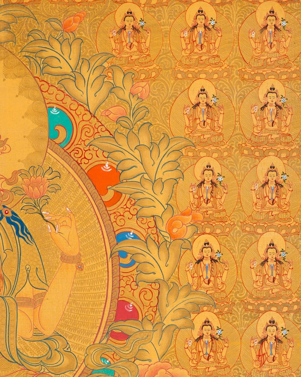 | Material | Pure 24 Carat Gold,Gouache and acrylic colors on Cotton Canvas |