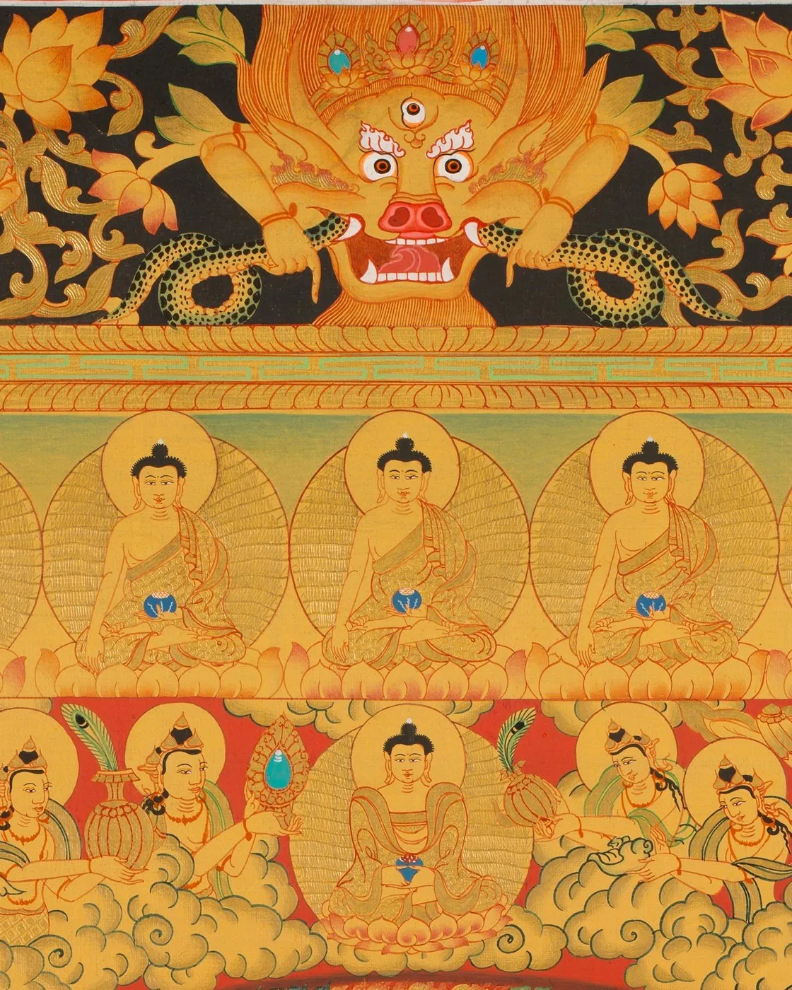 | Material | Pure 24 Carat Gold,Gouache and acrylic colors on Cotton Canvas |