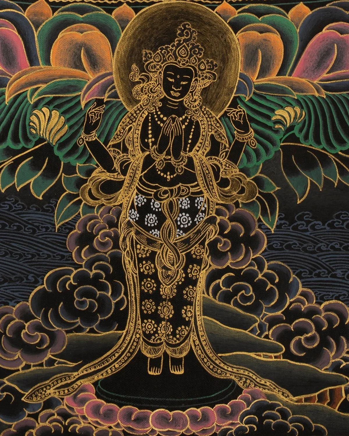 | Material | Pure 24 Carat Gold,Gouache and acrylic colors on Cotton Canvas |