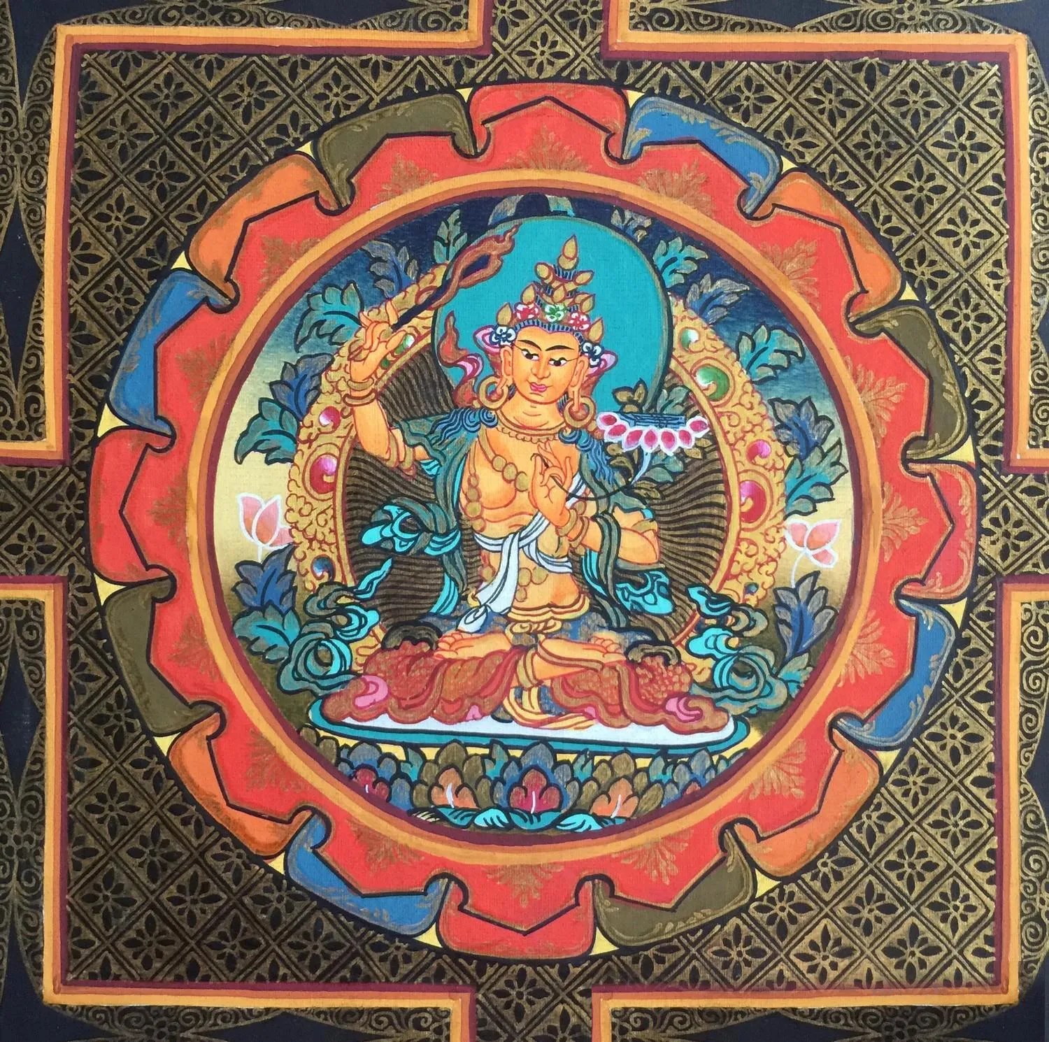 | Material | Pure 24 Carat Gold,Gouache and acrylic colors on Cotton Canvas |