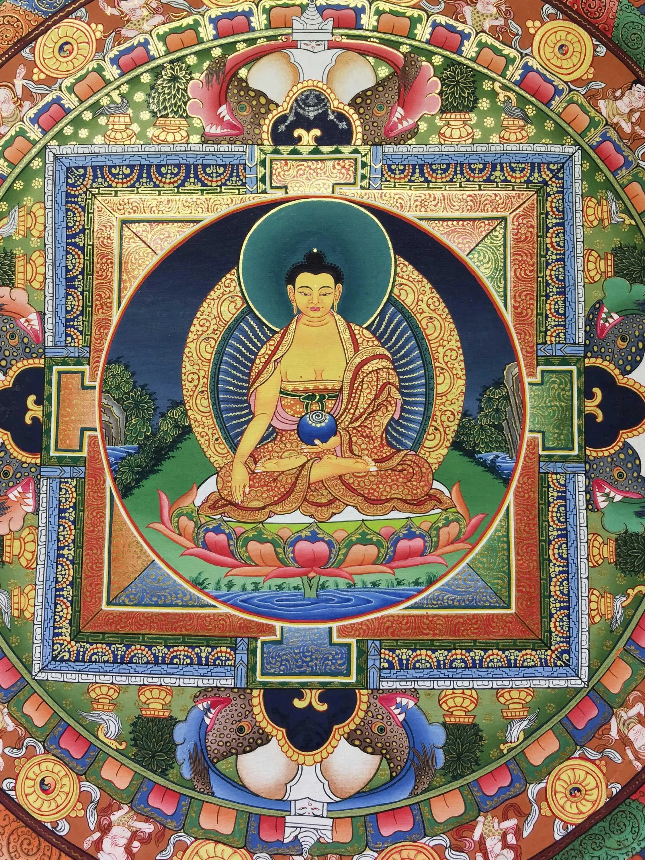 | Material | Pure 24 Carat Gold,Gouache and acrylic colors on Cotton Canvas |