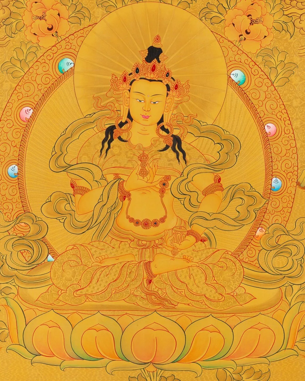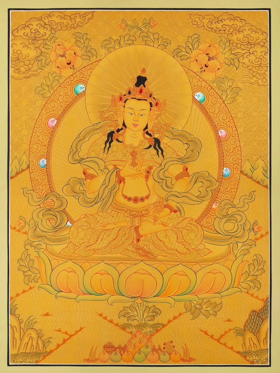 | Material | Pure 24 Carat Gold,Gouache and acrylic colors on Cotton Canvas |
