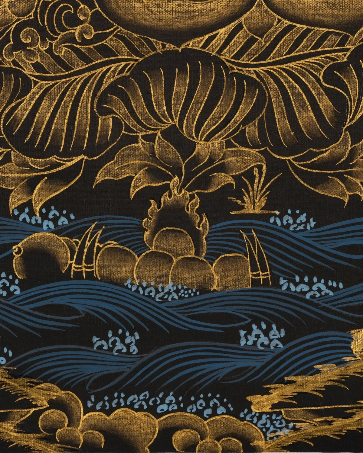| Material | Pure 24 Carat Gold,Gouache and acrylic colors on Cotton Canvas |