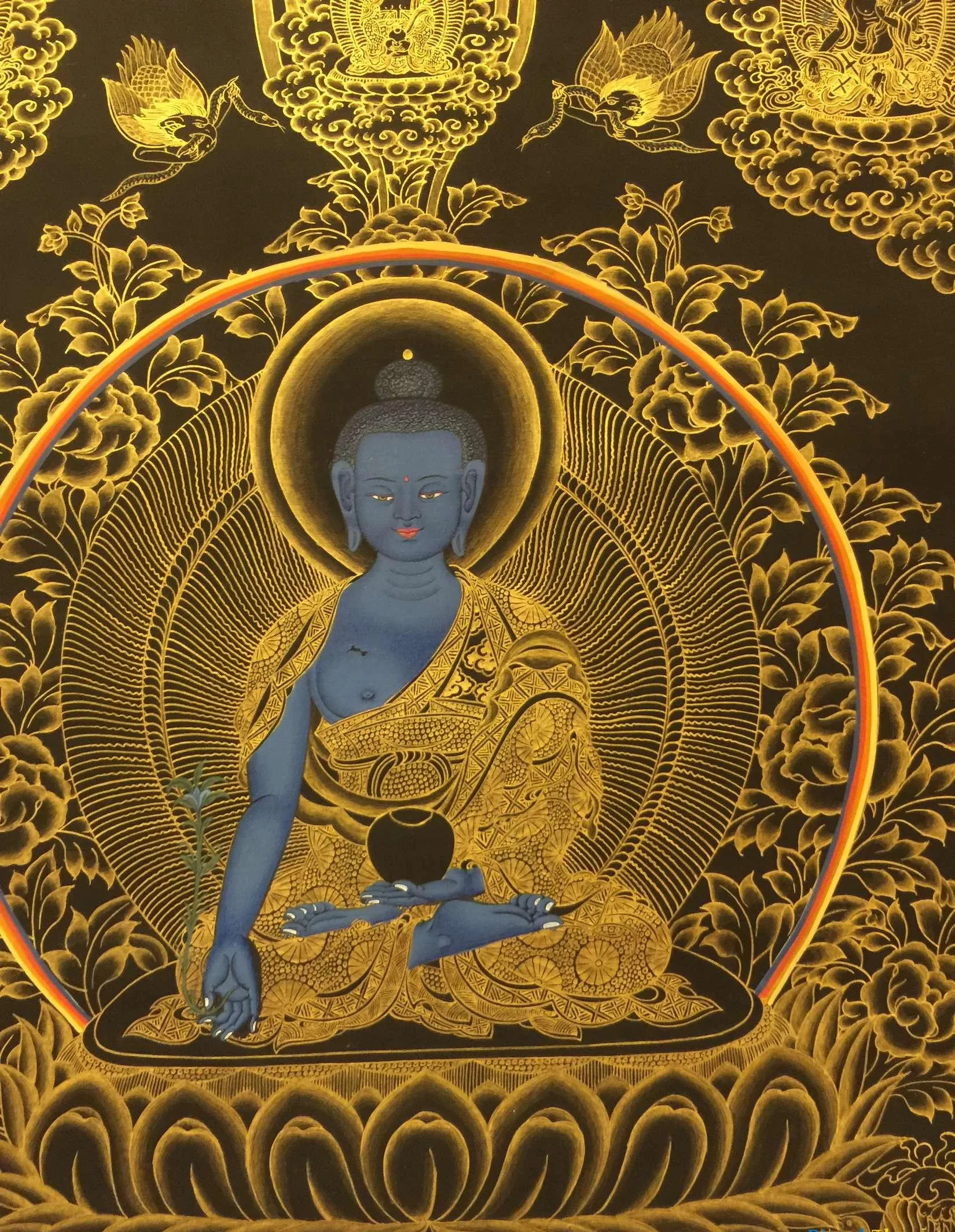 | Material | Pure 24 Carat Gold,Gouache and acrylic colors on Cotton Canvas |