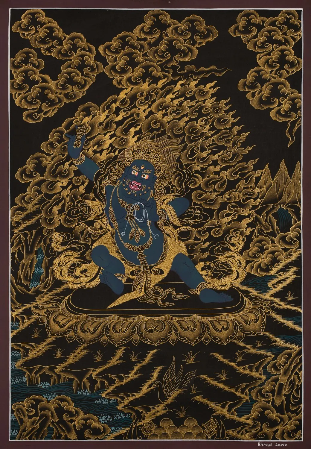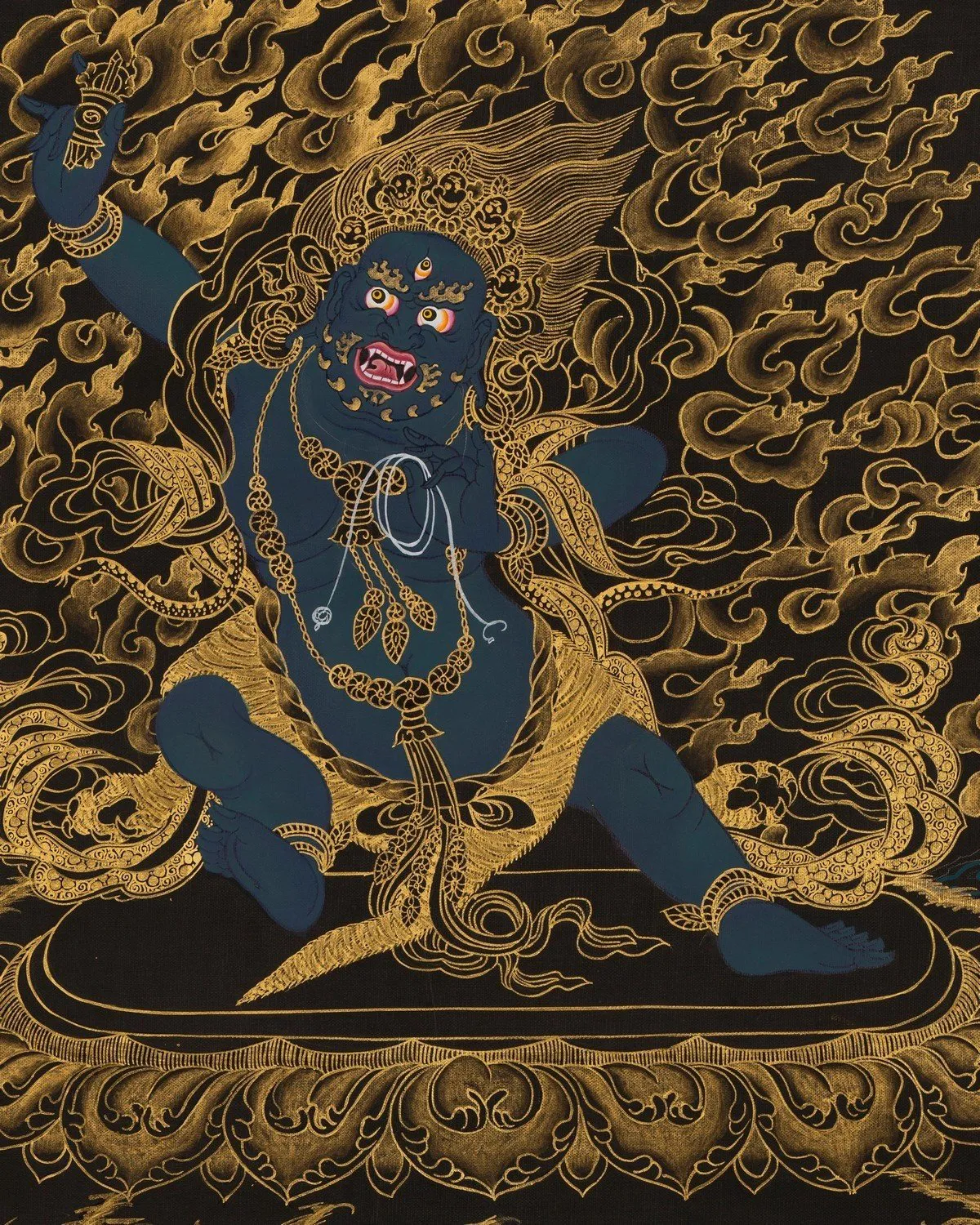 Embrace the divine energy of Vajrapani with the Brocadeless Thangka, a sacred artwork capturing the strength and compassion of this revered deity. The absence of brocade directs attention solely to the intricate details, inviting contemplation and spiritual connection. Vajrapani, symbolizing the thunderbolt of enlightenment, becomes a powerful focal point in your space. Let this exquisite Thangka inspire devotion and serve as a visual journey into the profound realms of Buddhist spirituality.